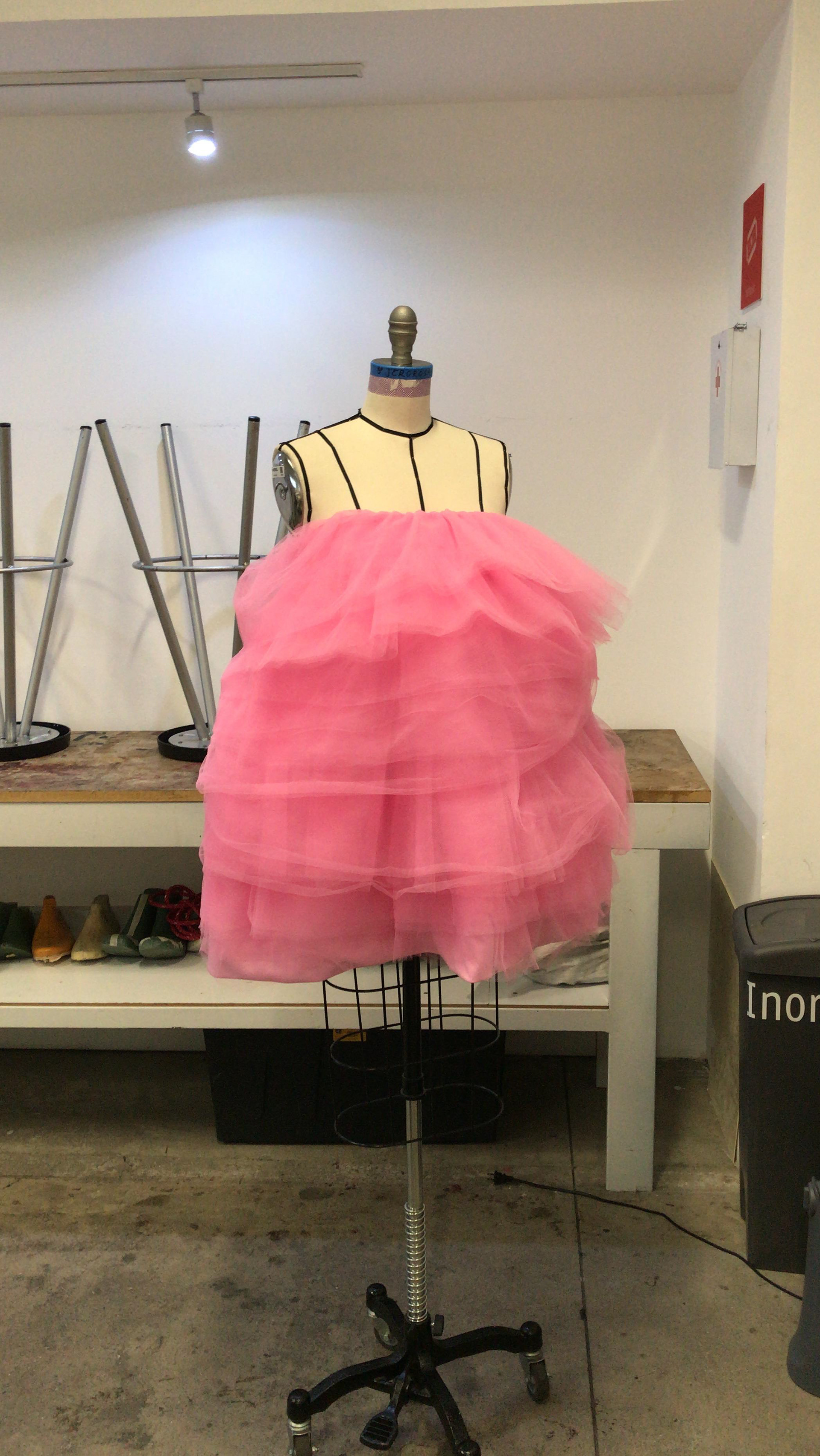 The silhouette extracts key elements of the quinceañera dress and the fighter's suit and mixes this juxtaposition of concepts through the color palette and the materials.