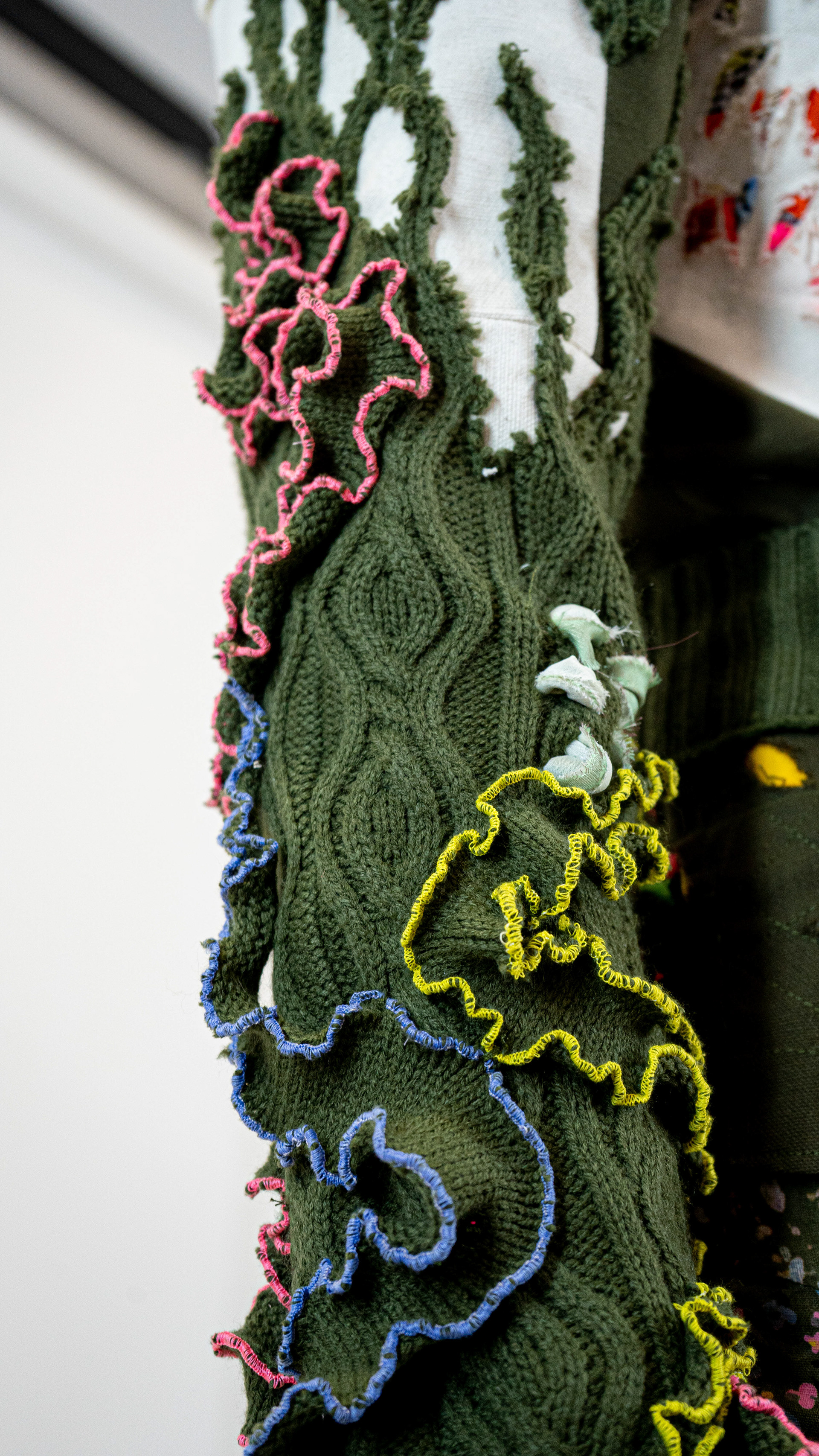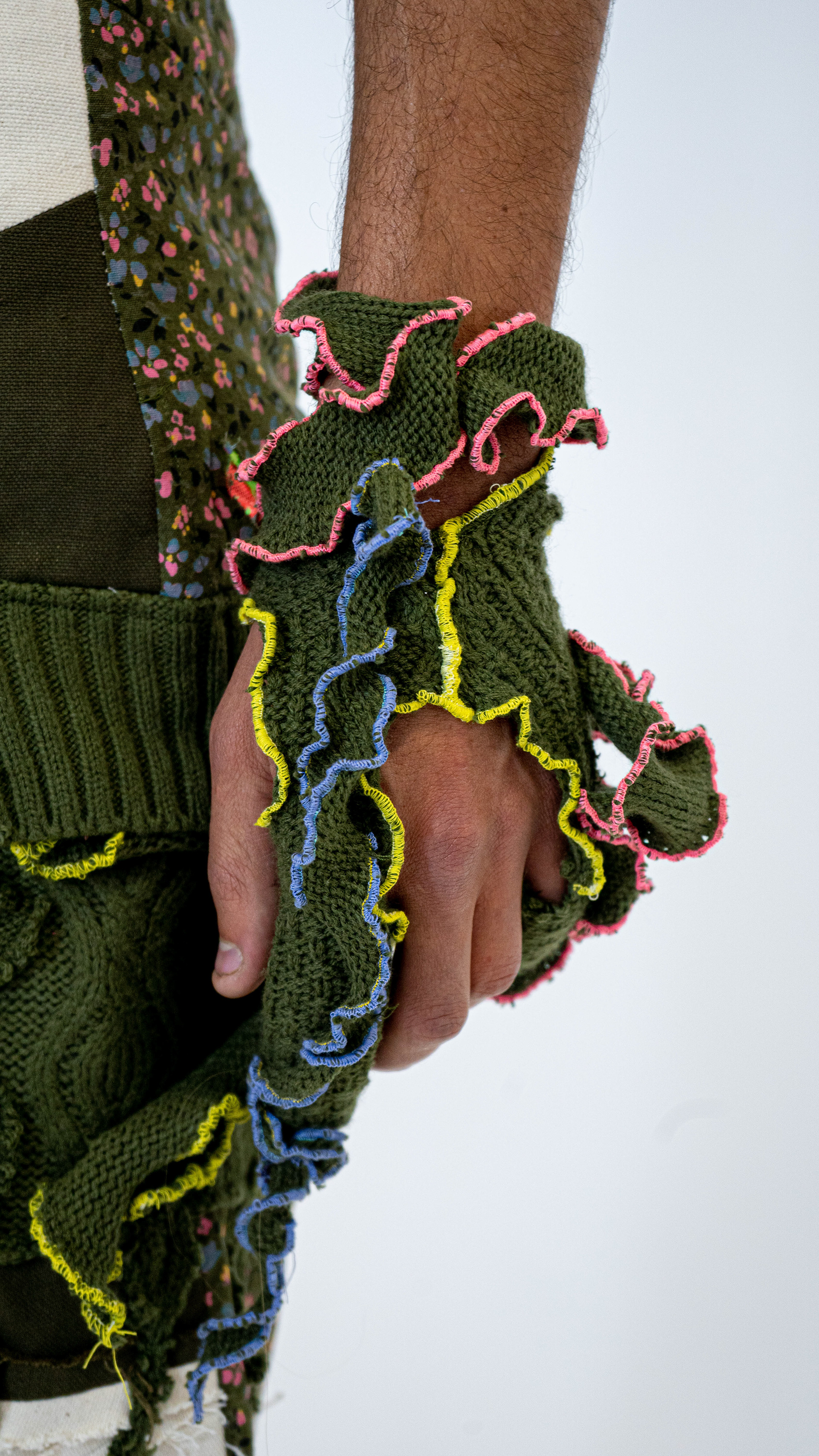 The silhouettes speak of a generational gap like the one I live with my mother, while textile experiments and color palette find inspiration in plant parasites, flowers and diseases found in my mother's garden.